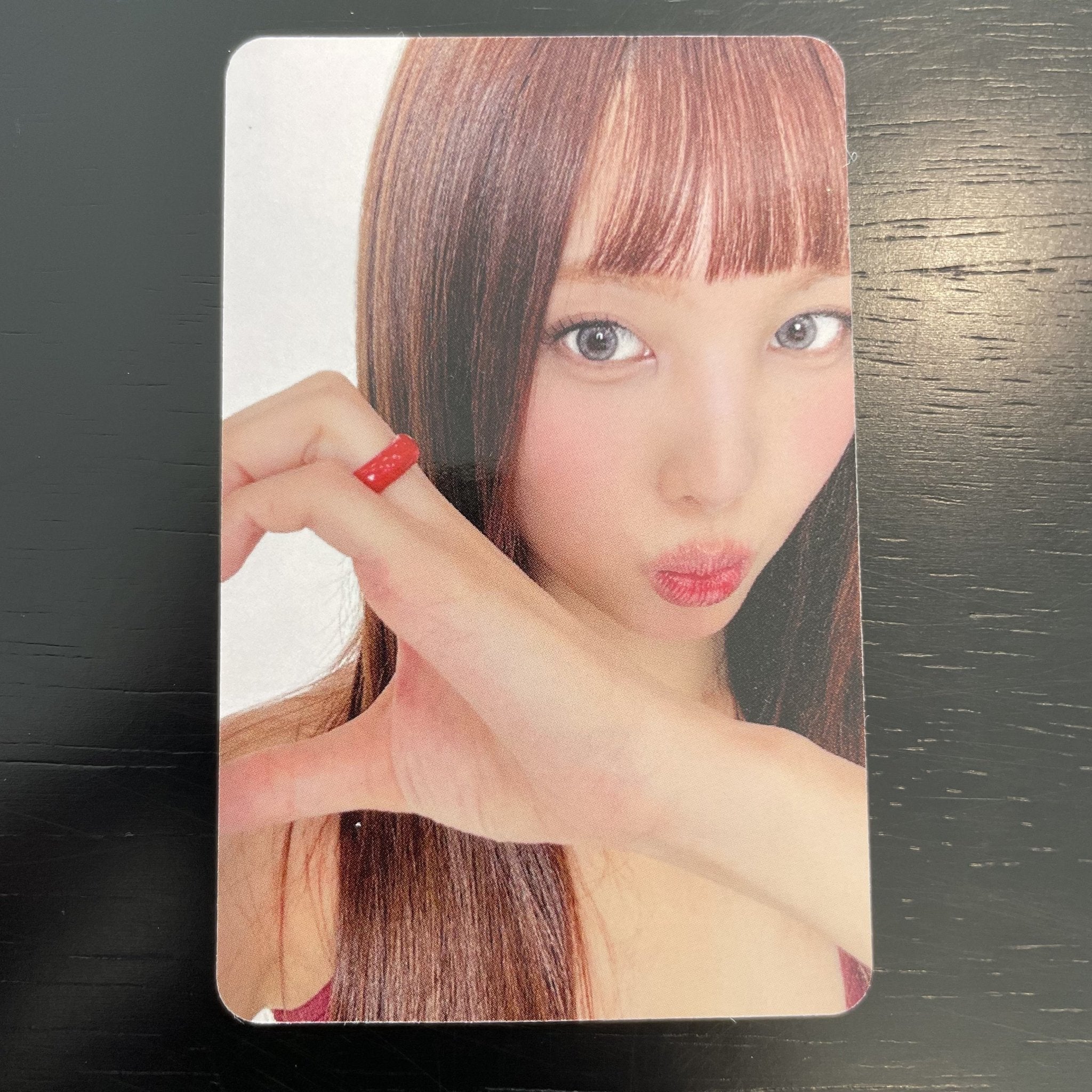 This is the photocard you'll be sliding into your binder while doing the TT pose at 2am. The RED WHISPERS concept has the girls looking like they're about to whisper the secret to world domination directly into your soul — and honestly? Take our wallets, queens.
