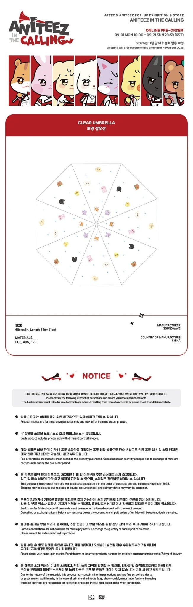 [PRE-ORDER] ATEEZ [ANITEEZ IN CALLING] Clear Umbrella + POB