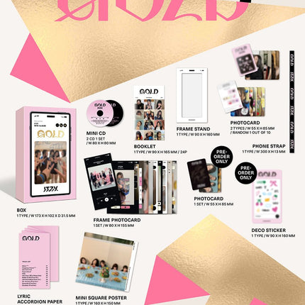 ITZY Gold [Phone Box Ver] CONTENTS FOR ALBUM: - Box : 173 x 102 x 26.5mm - Mini CD... Read more