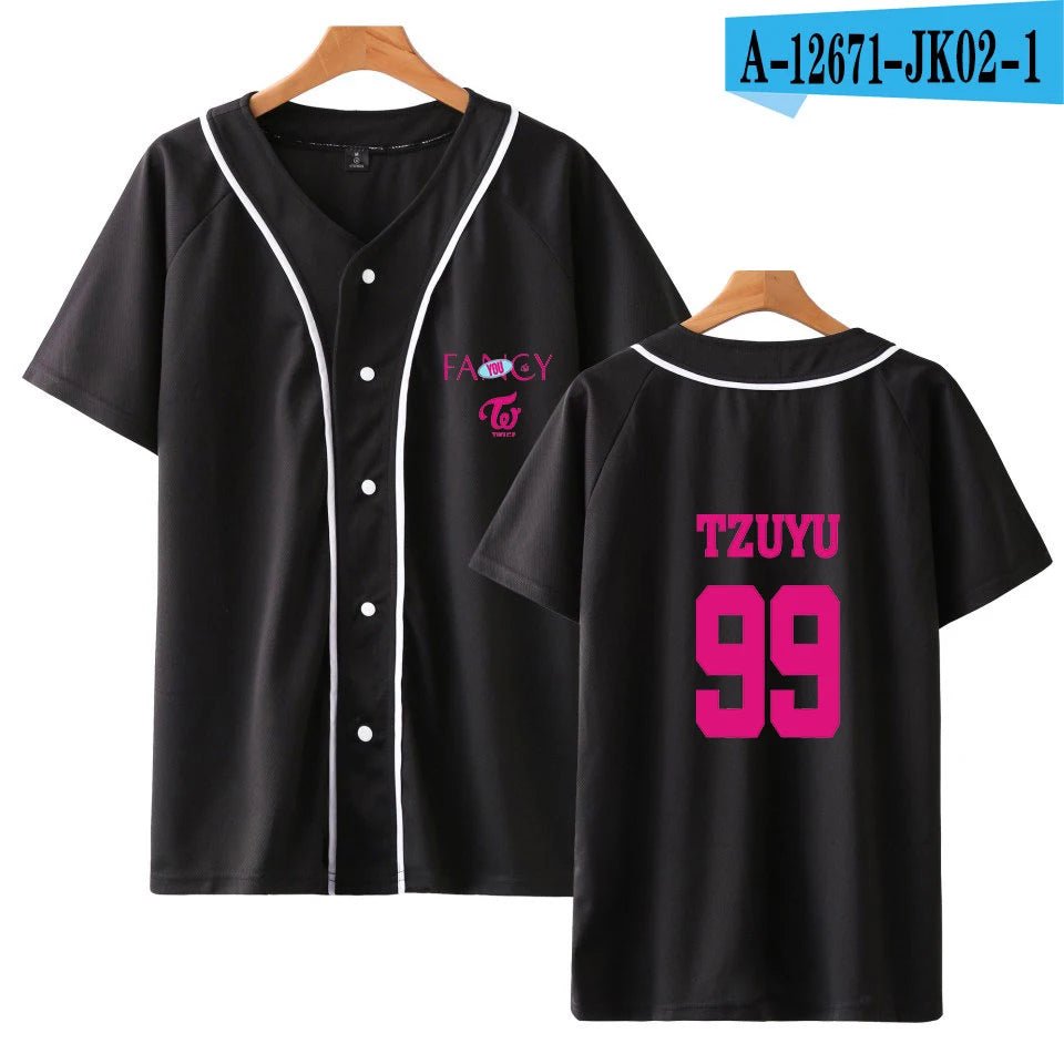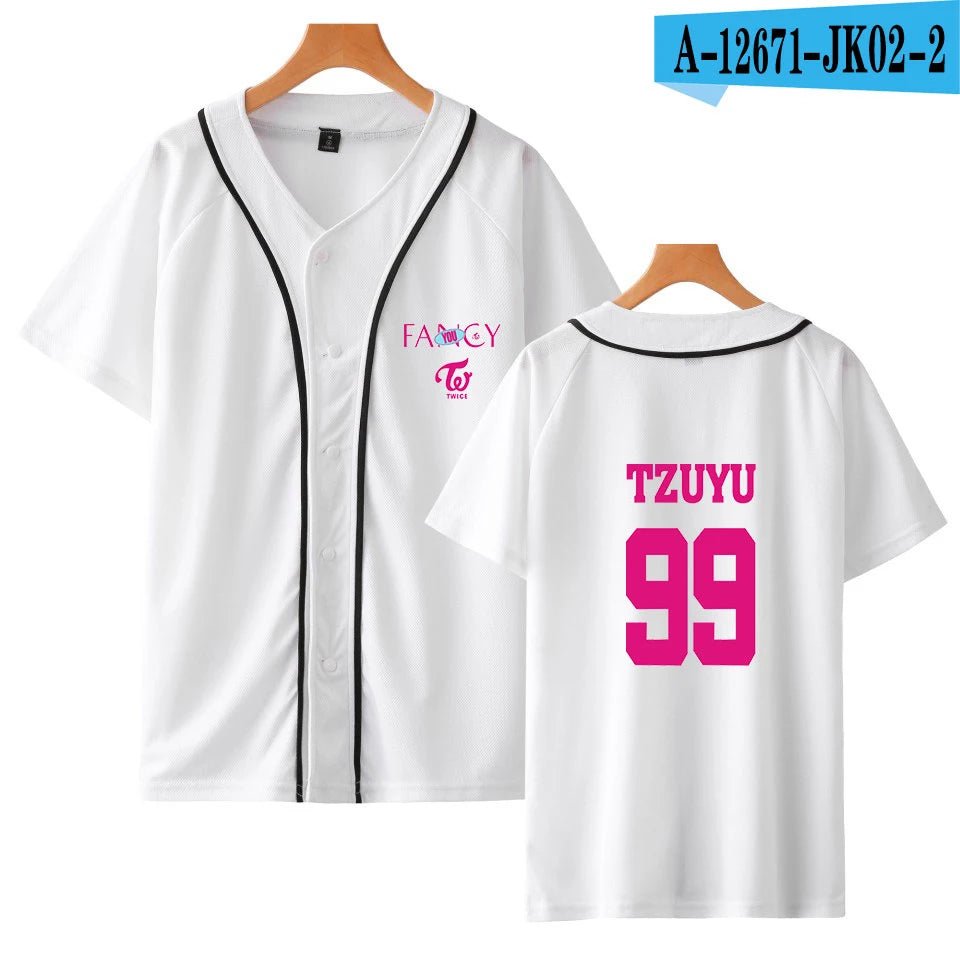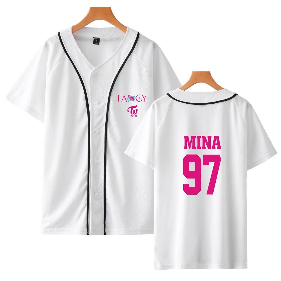 The TWICE “Fancy” Baseball Jersey Shirt is a stylish fanmade twice merch piece ins...