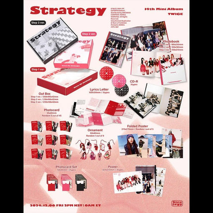 STRATEGY is the 14th mini album by the South Korean nine-member K-pop girls group Twice. This album was released in December of 2024 and comes in 3 versions. Order your Twice Strategy Album Online from Kpop Exchange Today!